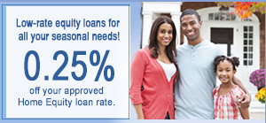 * Home Equity Loan Special: Applications must be submitted through 9/30/2025 and closed by 10/31/2025. Applies to fixed rate loans only (lines of credit are excluded). Offer subject to change or cancellation at any time.